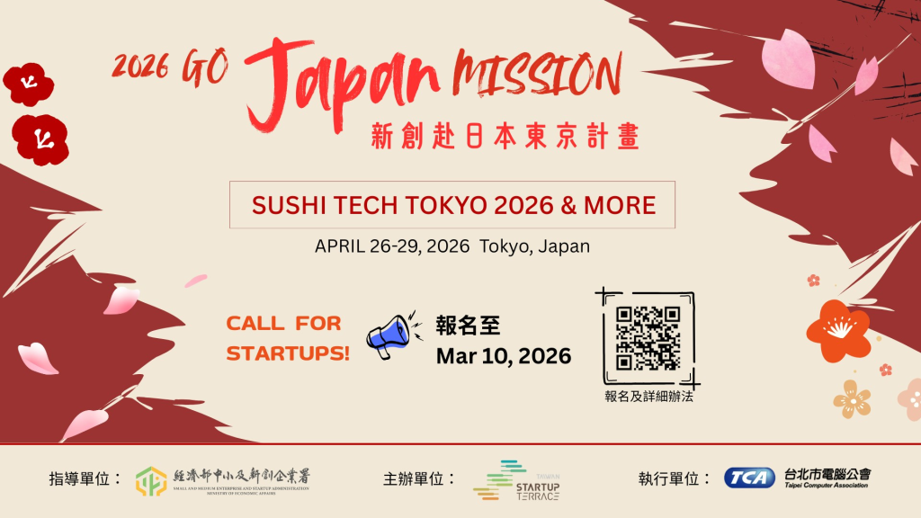 ✈️ 2026 Startup Terrace 國際拓展計畫正式啟動,持續帶領我國具潛力的優秀新創團隊走向國際舞台 🌍!將遴選 15 家臺灣潛力新創,一同前進 #日本東京永續高科技城市展 SusHi Tech Tokyo 🚀,並安排與創投及國際指標企業的精準媒合,協助臺灣新創深入掌握日本新創生態系關鍵機會與資源,拓展日本市場布局新藍圖!